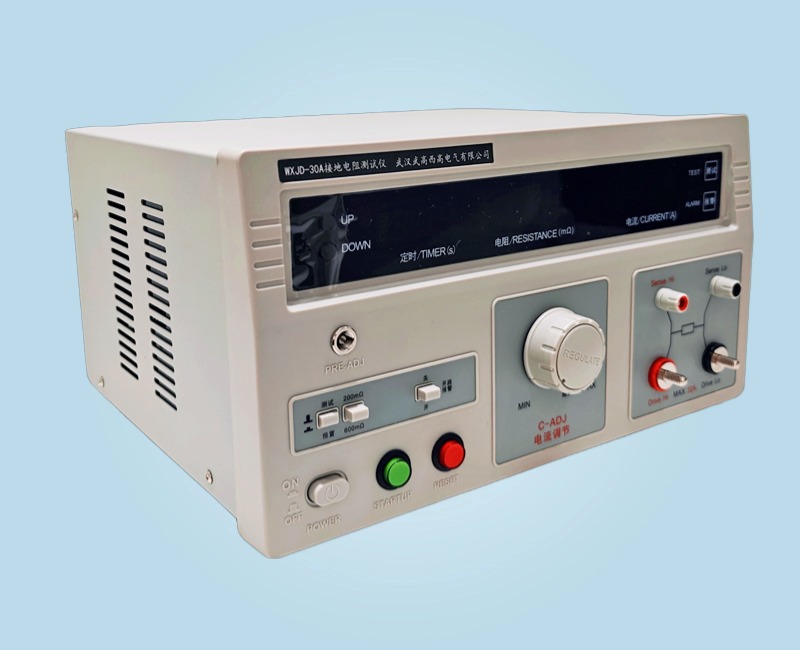 WXJD-30A 接地電阻測試儀適用于測量各種電機、電器、儀器儀表、家用電器等設備的保護接地端和可觸及的金屬殼體之間的電阻值。它具有測量準確,操作方便等優點。符合 GB4706.1《家用和類似用途電器的安全通用要求》和GB9706.1《醫用電氣設備安全通用要求》等國家標準中相關條款的試驗要求所需的測試設備。